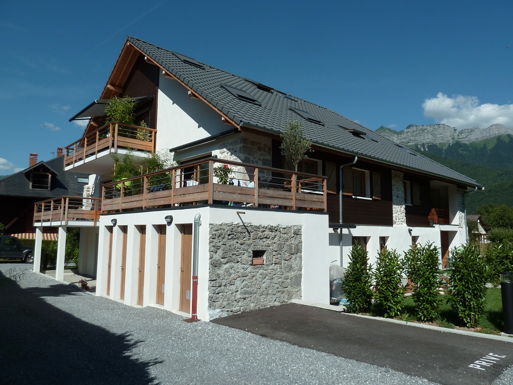 Dans le centre de Lathuile (bout du Lac d’Annecy), la Résidence Les Prés Fleuris est composée de 7 logements et d’un local commercial construit par une extension de cette ancienne bâtisse.